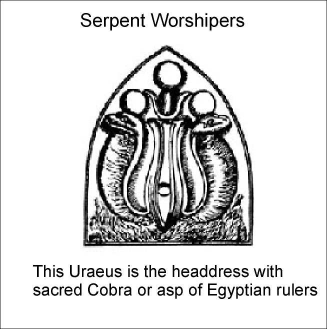 |  | In Egypt both the priests and the Pharaoh wore the Uraeus, which were coiled serpents upon their forehead (See Diagram). Also sacred serpents were preserved in the temples of Egypt. |